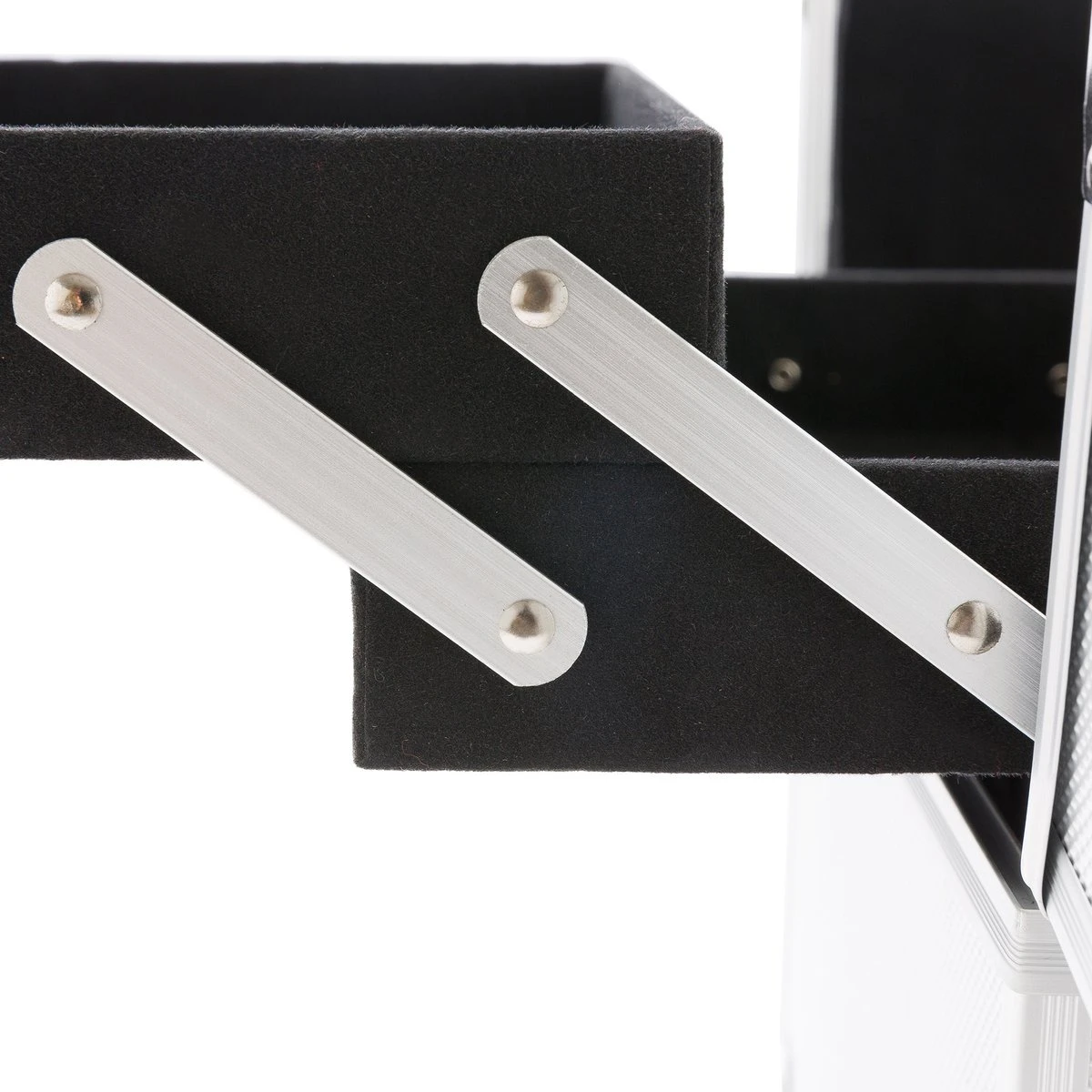 De vleugels aan beide zijden hebben elk 2 niveaus die naar wens kunnen worden gemonteerd of gedemonteerd, zodat u uw spullen netjes en overzichtelijk kunt opbergen. Het middelste deel van de koffer biedt de grootste opbergruimte.