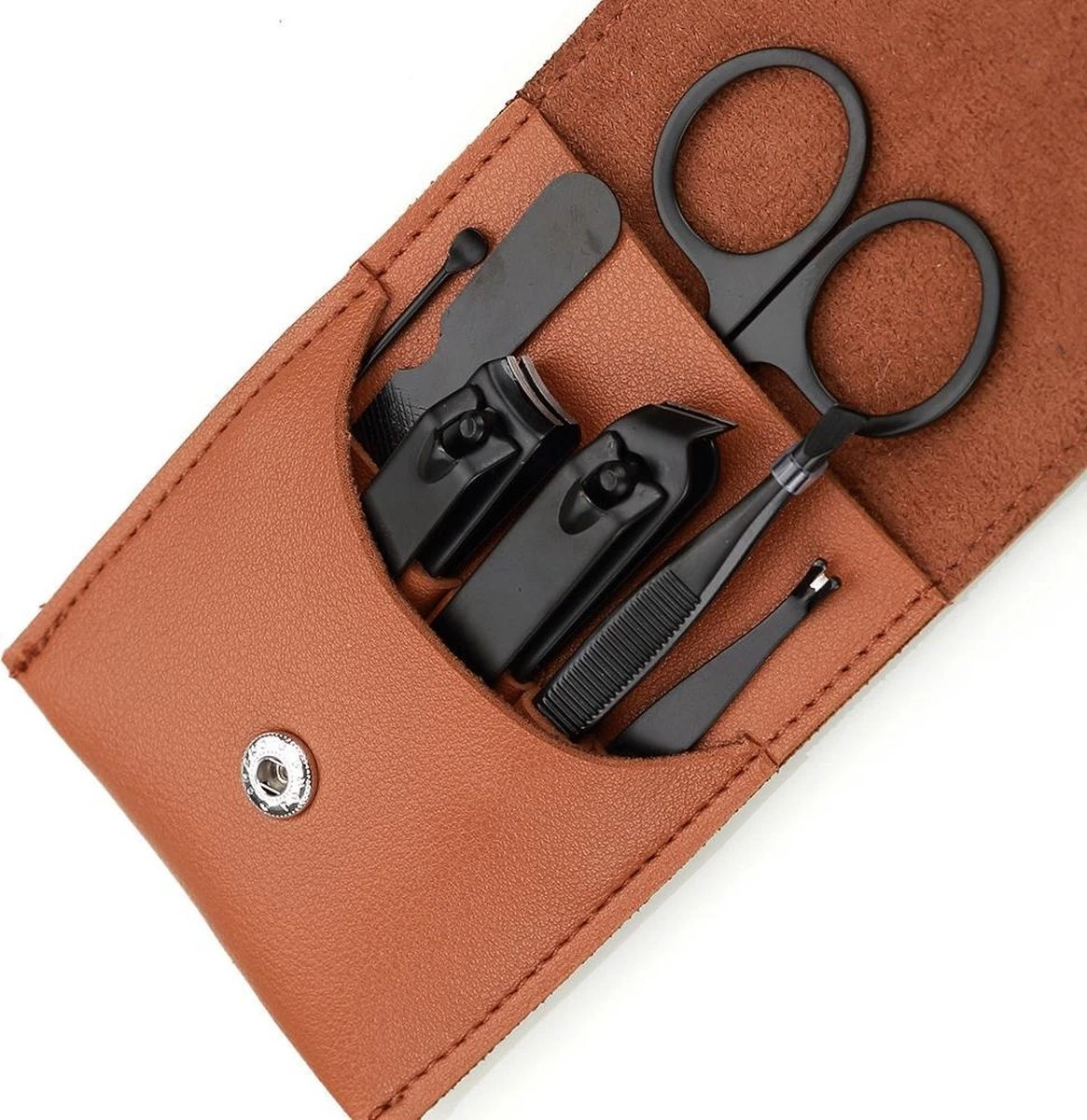 - Handverzorging (normale nagelknipper, schuine nagelknipper, nagelschaar, nagelvijl); voetverzorging (normale nagelknipper, schuine nagelknipper, nagelschaar, nagelvijl); gezichtsverzorging (wenkbrauwpincet, oorreiniger)