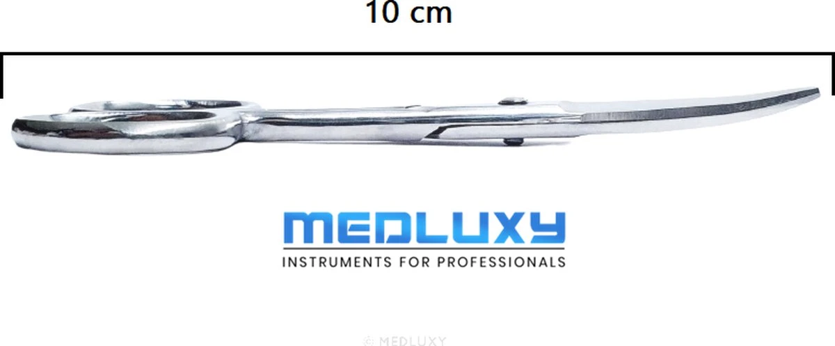 De MEDLUXY Nagelschaar met gebogen bladen uit de semi professionele serie is ideaal voor pedicure en manicure. Het knippen van de nagels gaat met deze nagelschaartje gemakkelijk. De totale lengte is 10 cm. Is met de hand vervaardigd van hoogwaardige kwaliteit roestvrij staal. Geschikt voor professioneel gebruik.