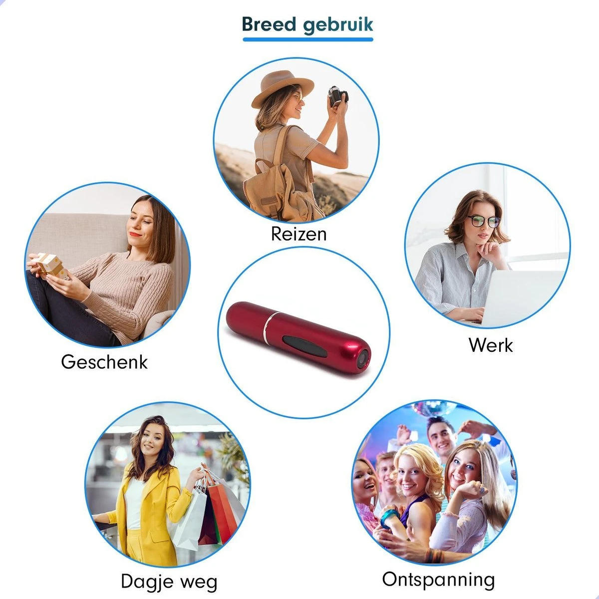 Bekijk de parfumverstuiver niet alleen als handig beautyproduct maar ook als modeaccessoire. Bij MaxedMore is de verstuiver in wel meer dan 10 verschillende kleuren te krijgen, zo kan je in elke tas een bijpassend flesje hebben. Parfum maakt je outfit pas echt af!