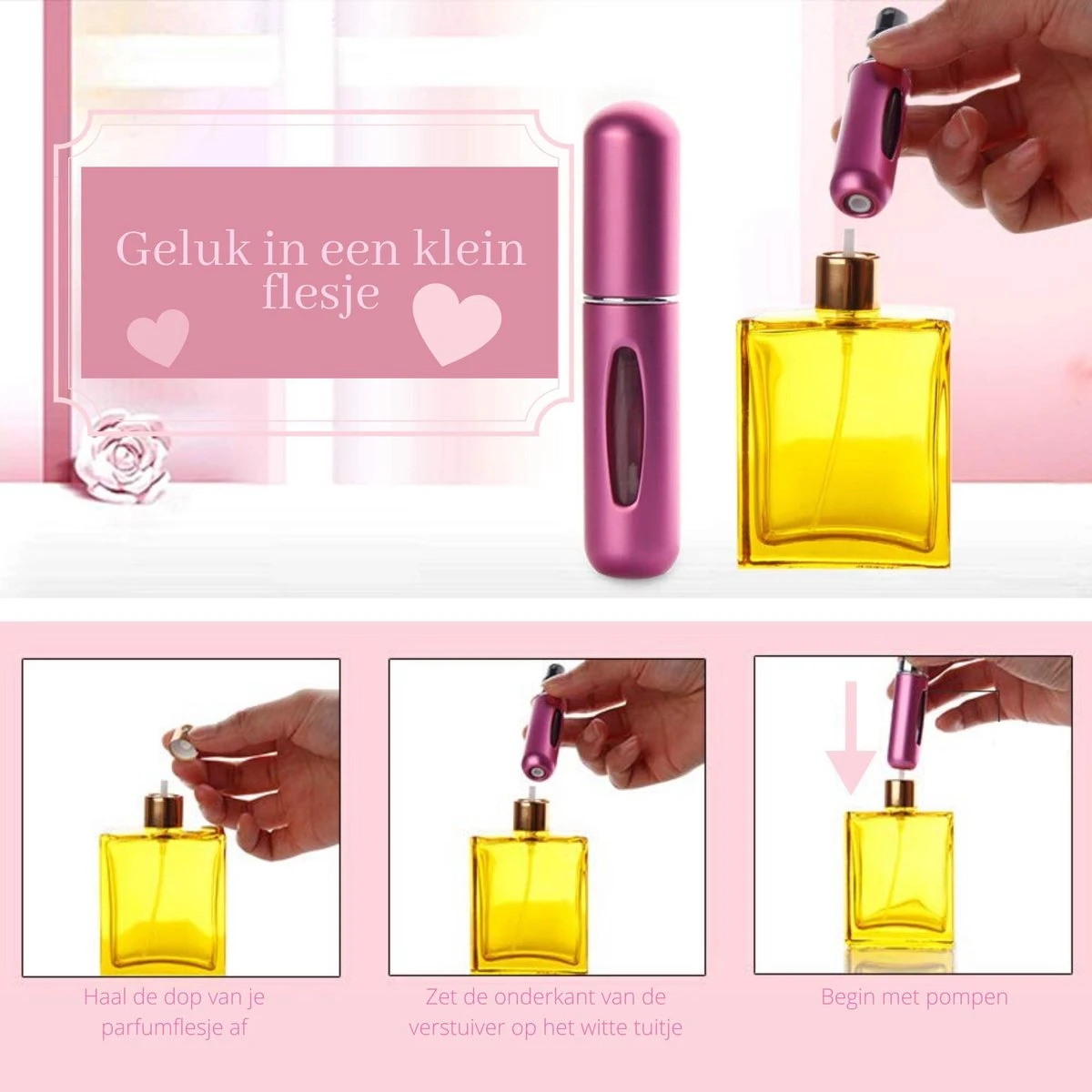 Bestel nu en neem jouw geluk voortaan mee in een klein flesje met de parfumverstuiver van MaxedMore!