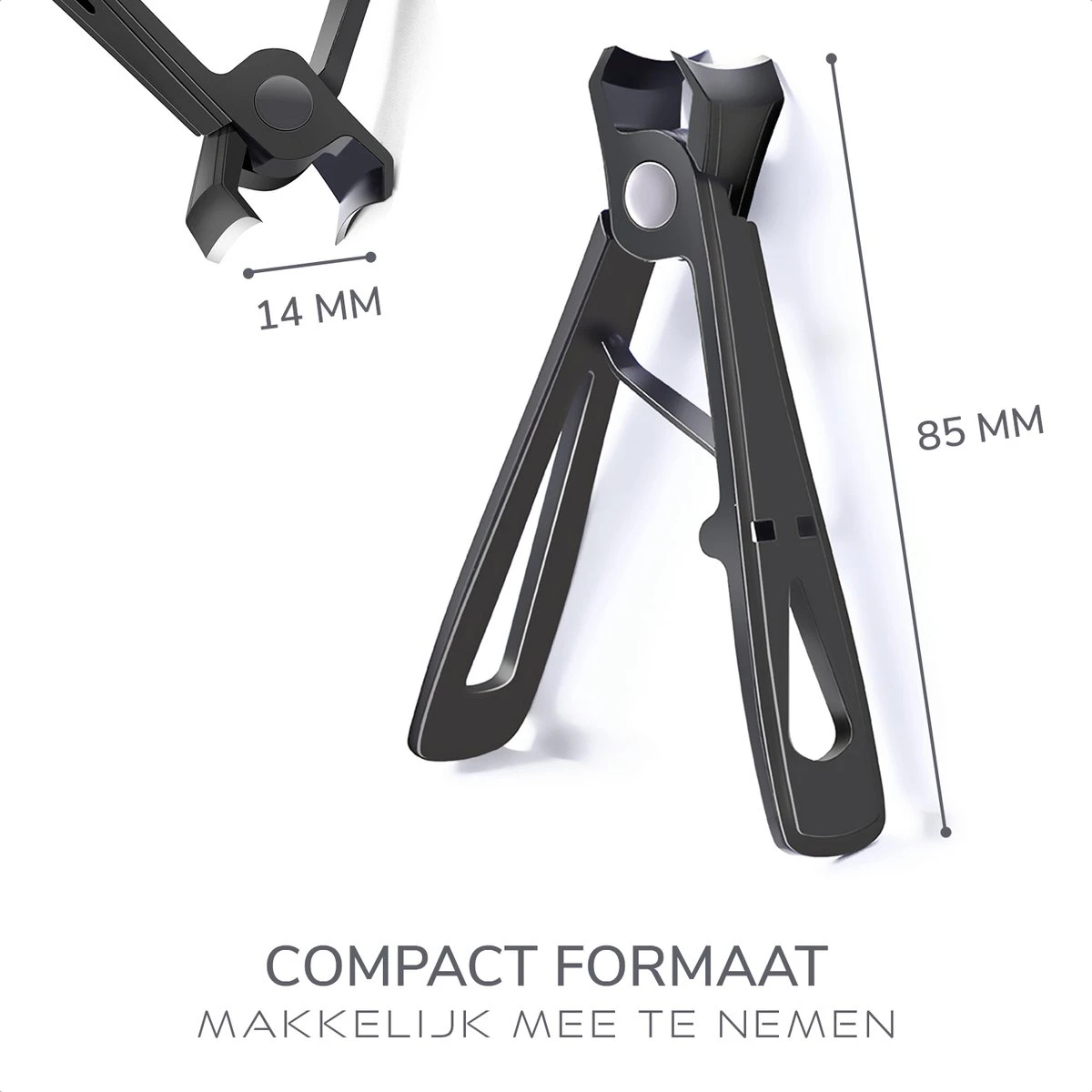 - Deze nagelknipper heeft een extra grote opening (maar liefs 6 mm!) waardoor hij erg geschikt is voor het afknippen van verdikte (kalk-) nagels.