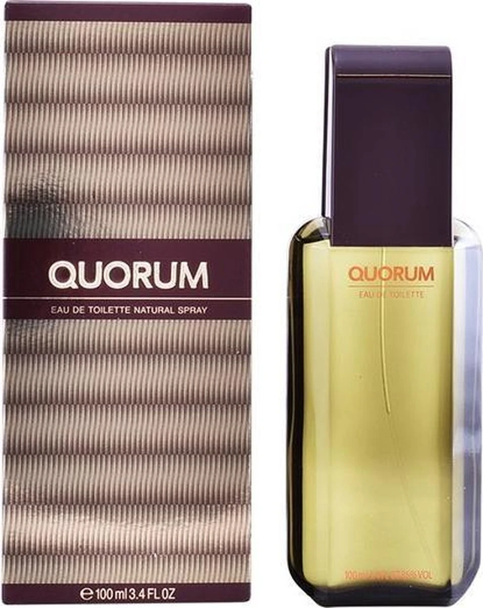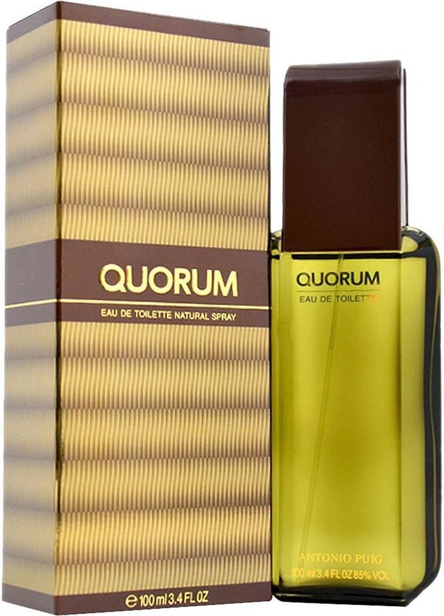 Antonio Puig Quorum Eau de Toilette 100ml Spray. Een klassieke warme maar ook intieme geur. Top: Bergamot, Artemisia, Komijn. Citrusvruchten Midden: Pathouli, Jasmijn, Den, Sandel, Cyclamen en Anjers Basis: Leder, Tabak, Mos, Amber en een vleugje Wierrook