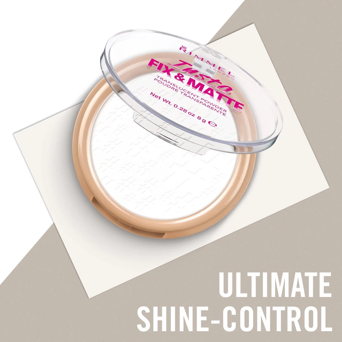 Last van een glimmende huid? Met de Rimmel London Insta Fix & Matte Clear Powder is dit verleden tijd. Deze doorzichtige poeder laat alle glans verdwijnen en heeft een matte dekking. Je kan het poeder met of zonder foundation gebruiken. Door de transparante kleur is de Insta Fix geschikt voor alle huidskleuren. Rimmel laat jou zijn wie jij bent. En net als London, staat Rimmel voor cool, onvoorspelbaar en edgy. Zelfexpressie zonder regels: wees jezelf, altijd echt en toegankelijk. Live the London Look!