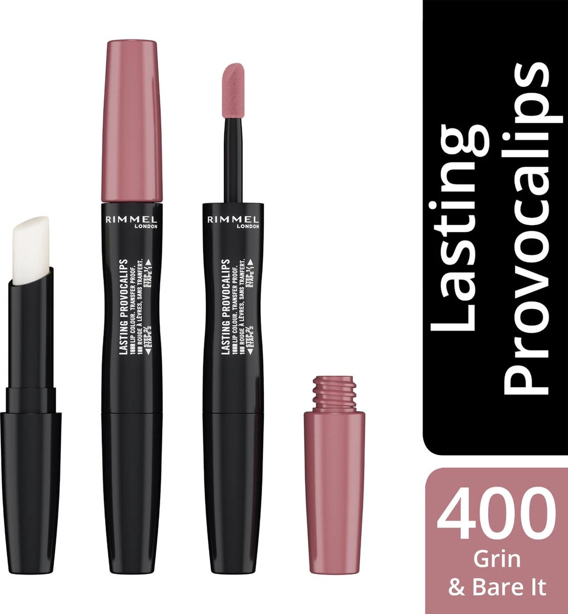 ‘Rimmel London Lasting Provocalips is een 2-staps vloeibare lippenstift voor een ingesloten, krachtige kleur en hydratatie. Het zorgt voor een transferbestendige kleur, glans en hydratatie die tot 16 uur aanhoudt.