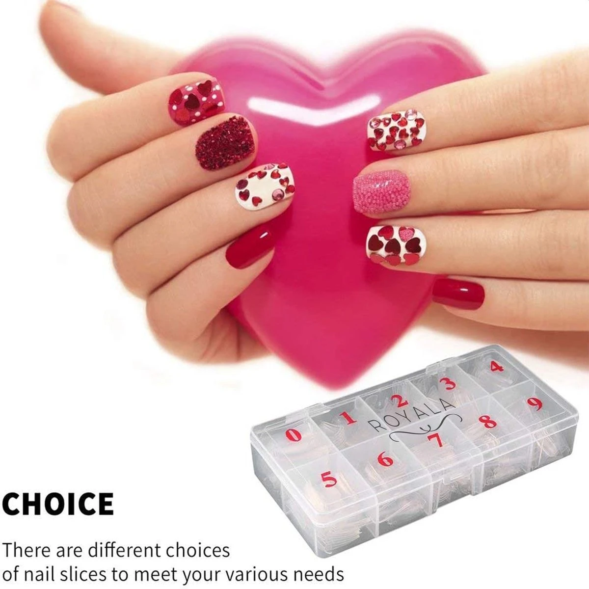 Royala 500 stuks Transparante / Clear / Heldere French Half Cover Nageltips in 10 verschillende maten voor het creeëren van de perfecte kunstnagels. Geschikt voor gebruik van zowel gellak als acryl.